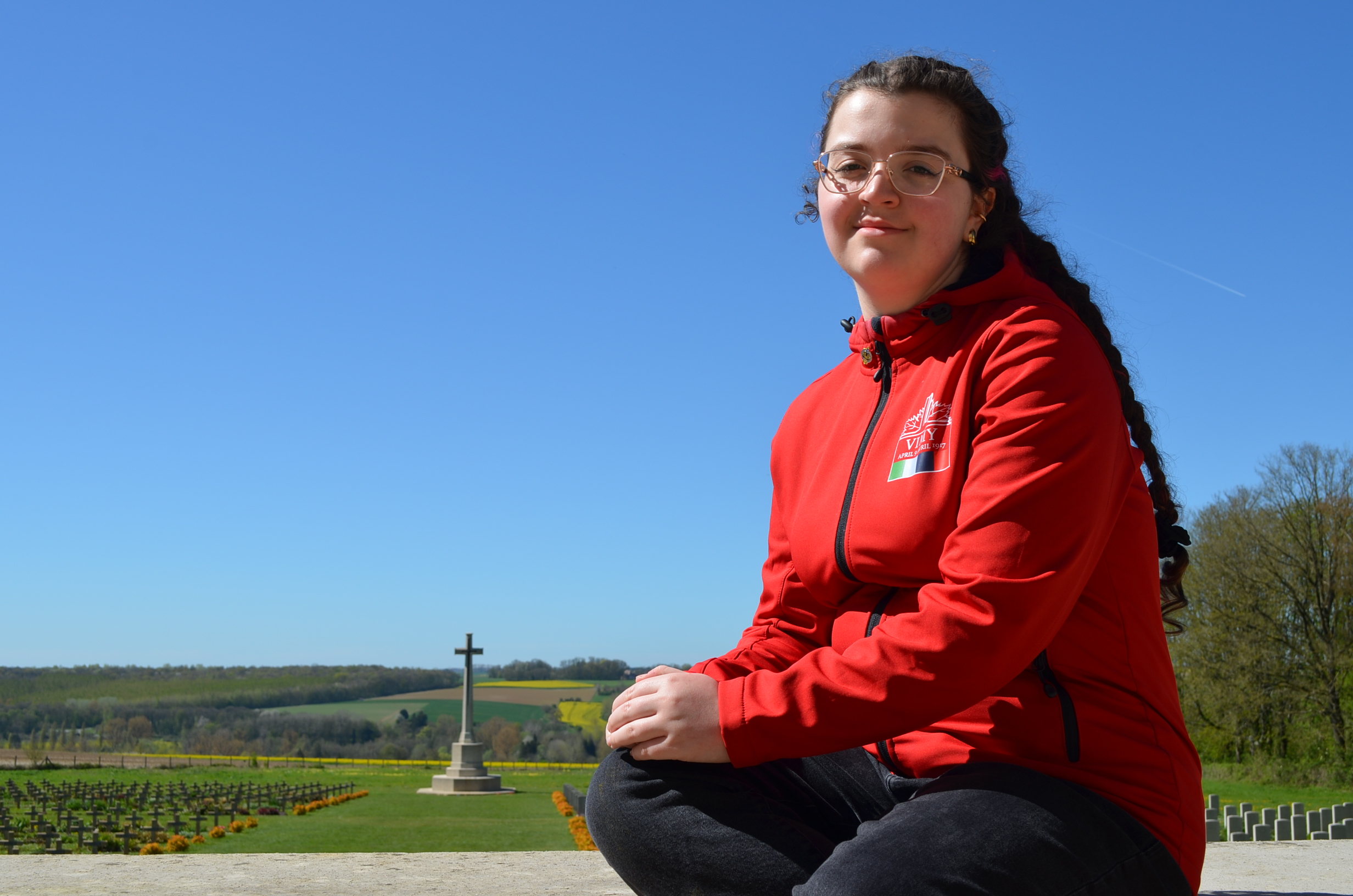 Today was a day filled to the brim with stories and history. It was wonderful to hear the many presentations by my fellow participants and see many more memorials. First was an incredible presentation on the role of women on the front lines at the Peronne Monument to the Dead. The presentation was beautiful, and on an extremely important topic. We then went on a journey to the Beaumont-Hamel Newfoundland Memorial, a very powerful place dedicated to the Newfoundland Regiment of the 29th Division of the British Army. This part of the day was the most memorable for me since that was where I was able to reflect on his and so many other’s lives, and also learn a lot about the Newfoundland Regiment. There, at the Caribou Monument where the names of soldiers of the Newfoundland Regiment who were not able to be buried are inscribed, three of us VPA participants presented our soldier projects, me included. I presented on Lance Corporal John Shiwak, an Inuk sniper who fought under the Newfoundland Regiment. The other two presentations were also about soldiers from Newfoundland. I felt very moved by the presentations as each of the participants presenting had a very personal connection to their chosen soldier. We also went to the Thiapval Memorial, where we got to see the names of 73,367 officers and soldiers who were not able to be buried. The sheer amount of names that were on the walls of the monument astonished me; it was hard to put into words. It made me remember how many names I also saw on the Menin Gate, how many soldiers were not identified and not buried, and how many lives the First World War took. Seeing all these monuments and memorials in person has put all this into perspective. Later, we went to the Delville Wood, the memorial for South Africans who fought during the First World War. There our group shared a fun yet emotional moment, realizing we only had a few days left together. While at this memorial, I truly took into account how special this program is, and how amazing and kind the people around me are. It is times like these that always remind me of the importance of experiences like the Vimy Pilgrimage Award. Over the course of the day, we also visited many cemeteries, reflecting on the roles of Black and Indian men in the Great War as well, such as how Black men had their own unit in the war, the No. 2 Construction Battalion. They were not permitted to fight, but they were vital to the war effort because they built bunkers, bridges, railways, and many other structures. We got to hear the story and see the grave of Vincent Carvery, a Black man who was part of the Battalion. He was known for being rebellious and undisciplined on his record, which led to him being shot by another soldier in 1918. The No. 2 Construction Battalion, and all coloured people in Canada, faced heavy racism from the government and military during the First World War. Learning the story of Carvery was eye- opening. It gave a very real example of what the war was like for a Black man at the time. The Indian Army was their own military force in the British Army, with soldiers of differing cultures and spoken languages coming together to serve in the First World War. We were fortunate enough to see some of their graves at the La Chapelette British and Indian Cemetery. Their graves were in three different languages, each having their own epitaph relating to their culture. The entire day we also learned about key events in the First World War, mainly the Battle of the Somme and what happened over the course of it. Of course, this history is important, yet the stories of soldiers and the names of them on graves and monuments spoke to me the most.