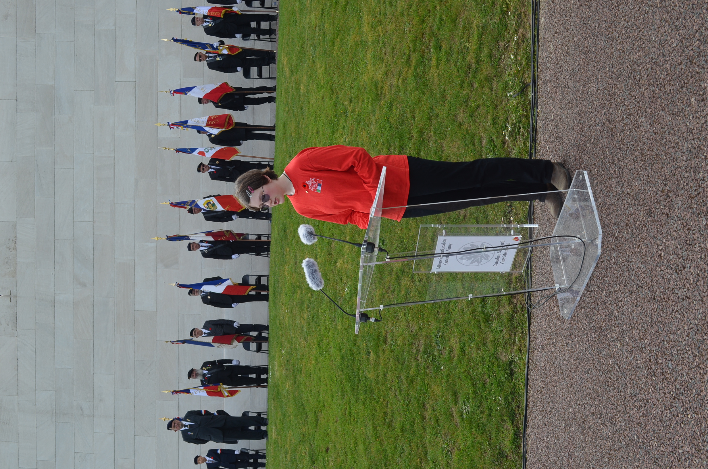 Amelia: Red like the blood spilled by the soldiers over 100 years ago, but also red like the Vimy Pilgrimage Award Clothing that brings us all together – red like life and death.